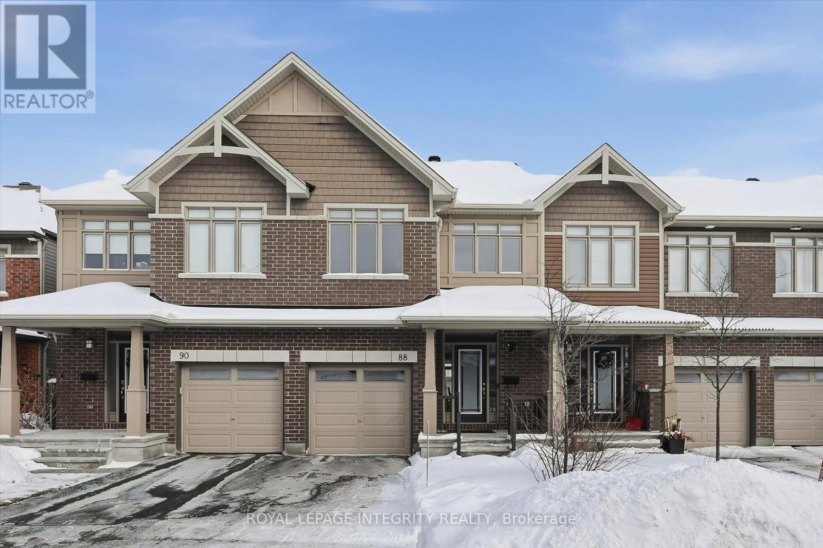 Welcome to 88 Chevron Place, located on a quiet cul-de-sac in a growing, family-friendly neighbourhood! This stylish 3-bedroom, 3-bathroom Energy Efficient certified Claridge Summit townhome offers over 2,300 sq ft of living space (1,869 sq ft above grade plus the finished basement) and is sure to impress. Pull into the driveway with space for two vehicles before stepping into the welcoming foyer featuring a large closet and convenient powder room. Pass by the mudroom with additional storage and inside access to the garage before entering the open-concept main living space highlighted by hardwood and tile flooring. The beautiful kitchen features dark cabinetry, stainless steel appliances, abundant cabinet and counter space, upgraded 42" cabinets, and a stylish brick-pattern backsplash, all overlooking the dedicated dining area and the sun-filled living room complete with a cozy gas fireplace and access to the fully fenced backyard. Upstairs, you'll find the sleeping quarters consisting of a spacious primary bedroom with walk-in closet and a luxurious 5-piece ensuite with dual vanity, glass shower, and separate soaker tub. Two generously sized secondary bedrooms, a full bathroom also featuring a dual vanity, convenient laundry area, and large linen closet complete the level. The finished basement provides a versatile recreation room along with ample storage space. Ideally located close to public transportation, several schools with a new elementary school planned nearby, surrounded by nature and Prescott-Russell walking trails, and just minutes to shopping and all necessary amenities. Book your showing today! (id:27)